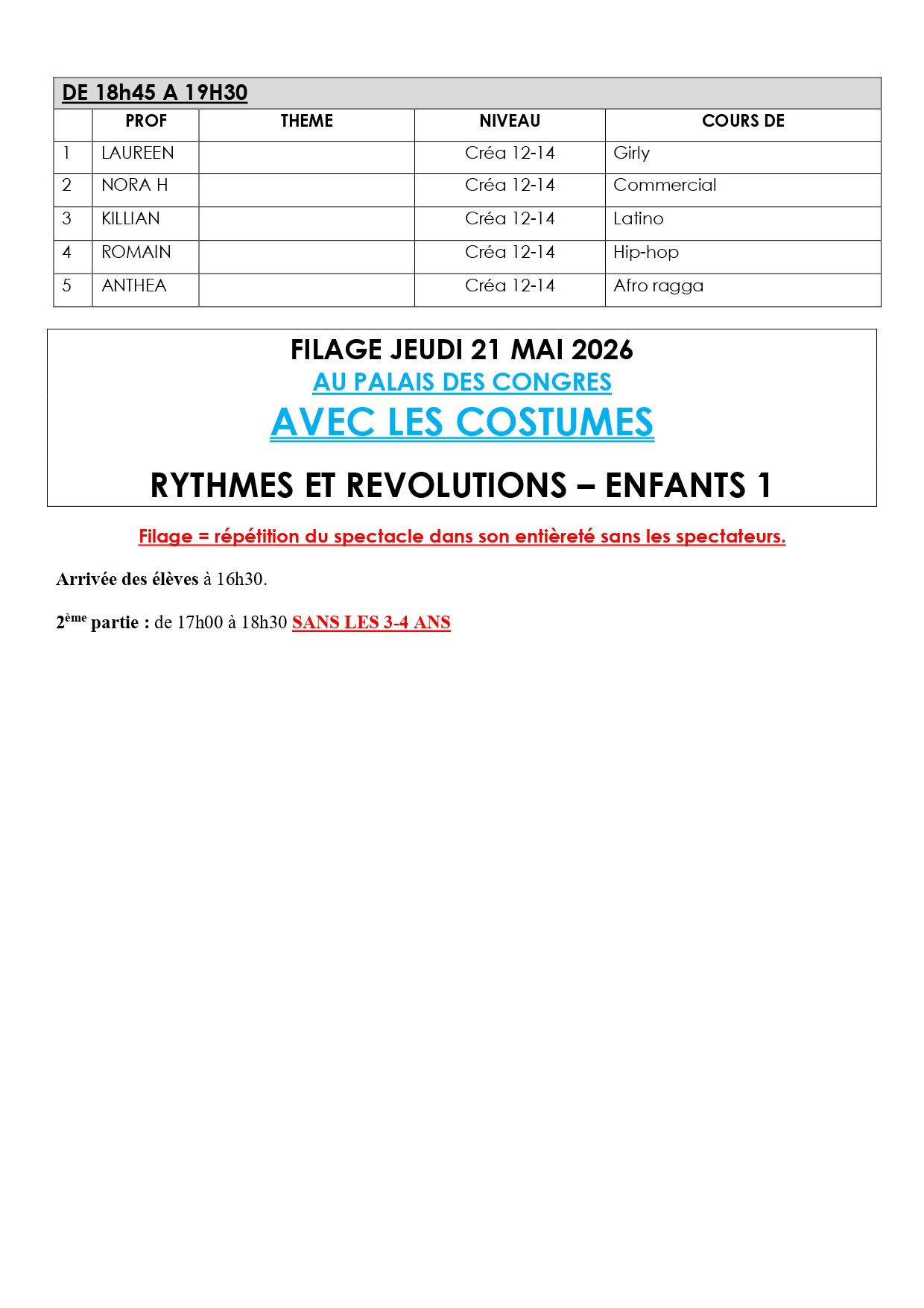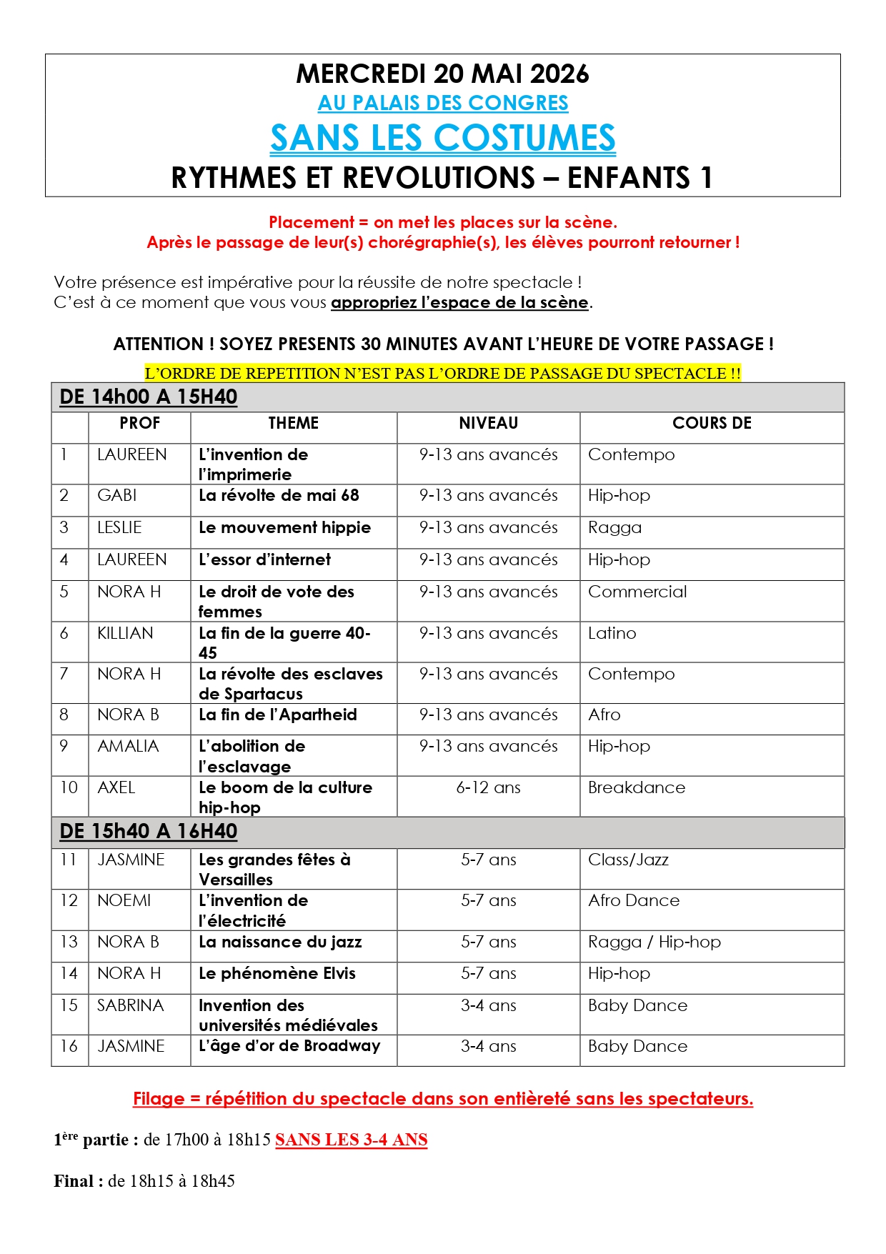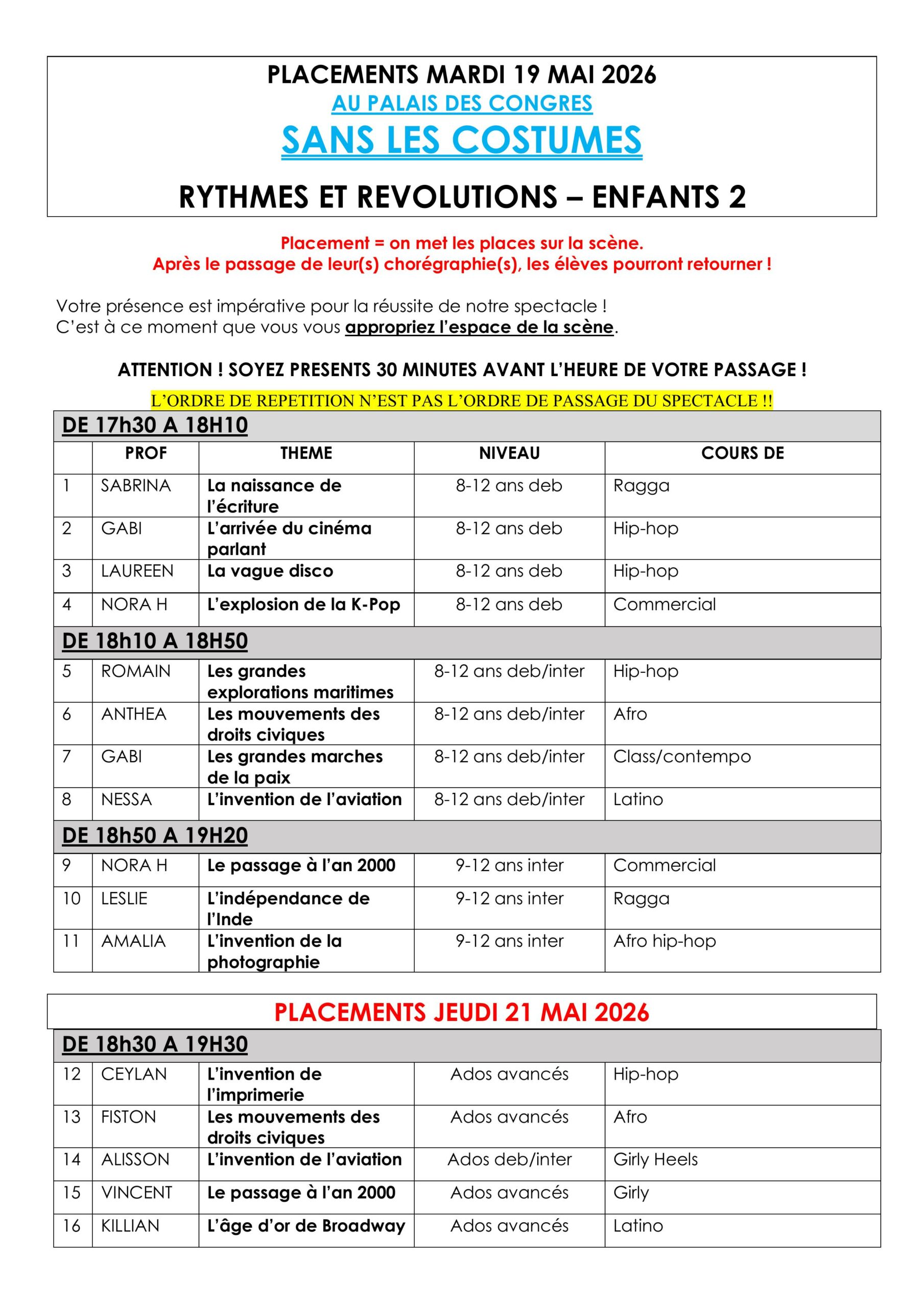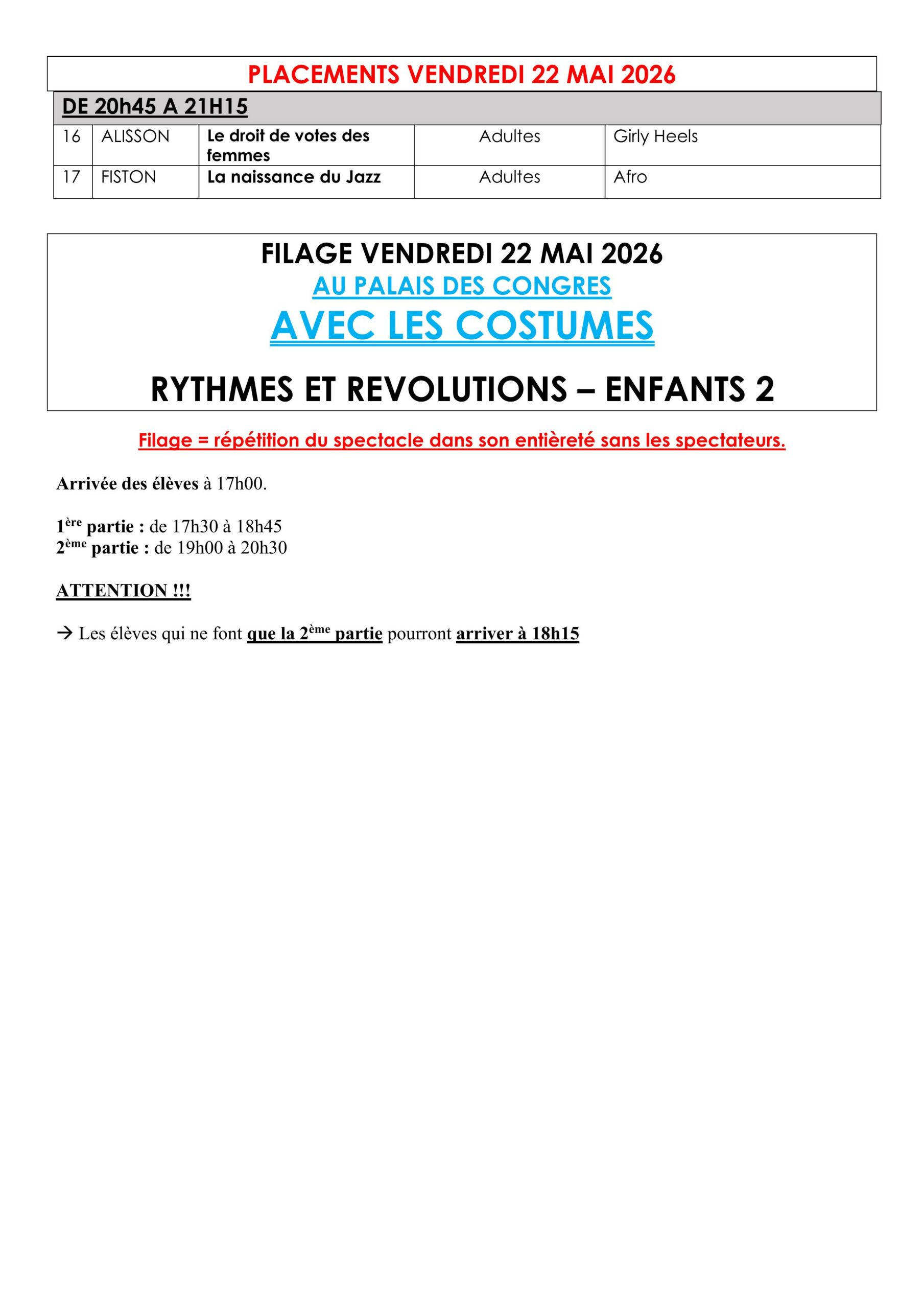 Dimanche 24 mai 2026 – 11h30 Vente des places à partir du mercredi 11 mars | Dimanche 24 mai 2026 – 16h Vente des places à partir du vendredi 13 mars |