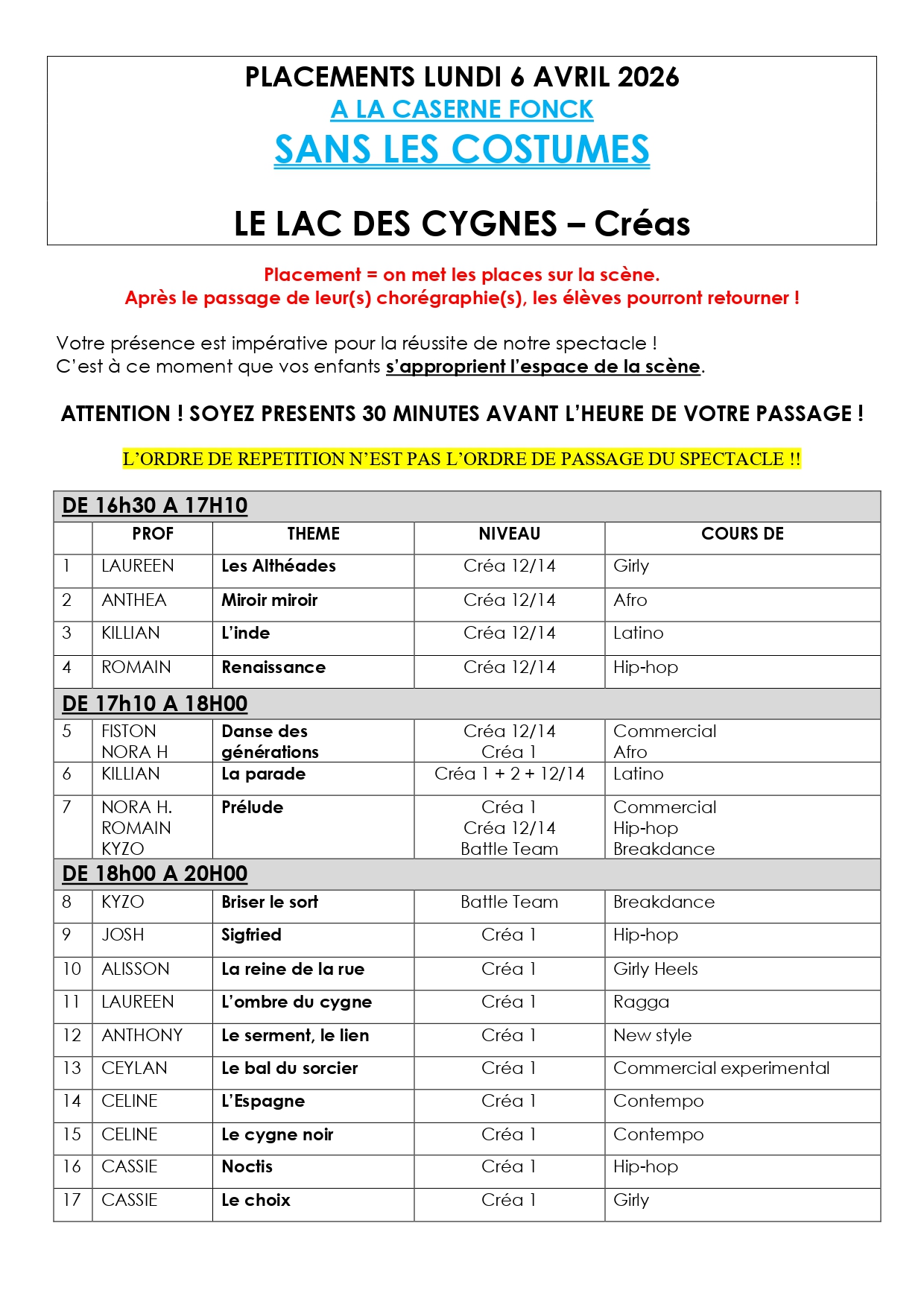 ORDRE DE PASSAGE